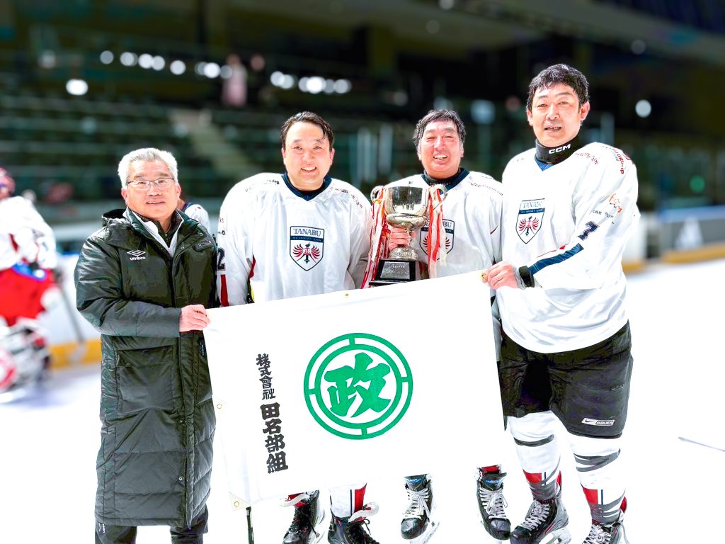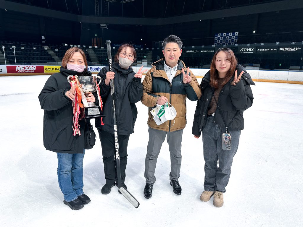 そして、当社の田名部組アイスホッケー部にて選手、監督、マネージャーとしてご活躍いただいている皆様、優勝おめでとうございます!!
